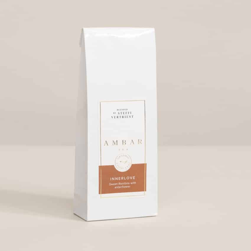 Deze rooibosthee van AMBAR wordt gecombineerd met heerlijke vlierbloessem en roosjes. Het resultaat is een lichtfruitige, maar vooral bloemige melange die je doet wegdromen. In de ondertonen vind je een licht kruidige afdronk. Het is een thee die zeer zacht is voor het spijsverteringsstelsel, wat je ook terugvindt in de naam van deze thee ‘Innerlove’, want het is als het ware een zachte knuffel voor je binnenste. Alle mooie voordelen van een rooibosthee in een verrassende en bloemige combinatie. Deze zoete rooibosthee komt uit de AMBAR theelijn van Steffi Vertriest.