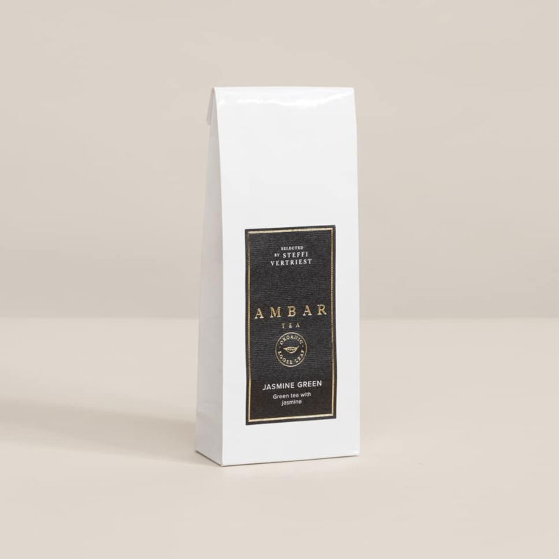 Deze groene jasmijnthee is bijzonder populair. Dankzij de zachte smaak van de groene thee gecombineerd met het heerlijke bloemenaroma is dit een echte doordrinker doorheen de ganse dag. Groene thee heeft een kalmerend effect door zijn L-theanine, de totaal beleving van een bloemengeur geeft daarbij nog een extra duwtje voor een heerlijk kopje zen.In het kopje is de thee licht geel en het geeft een fruitige ondertoon met een sterke afsmaak. Deze heerlijke thee komt uit de AMBAR collectie van theesommelier Steffi Vertriest.