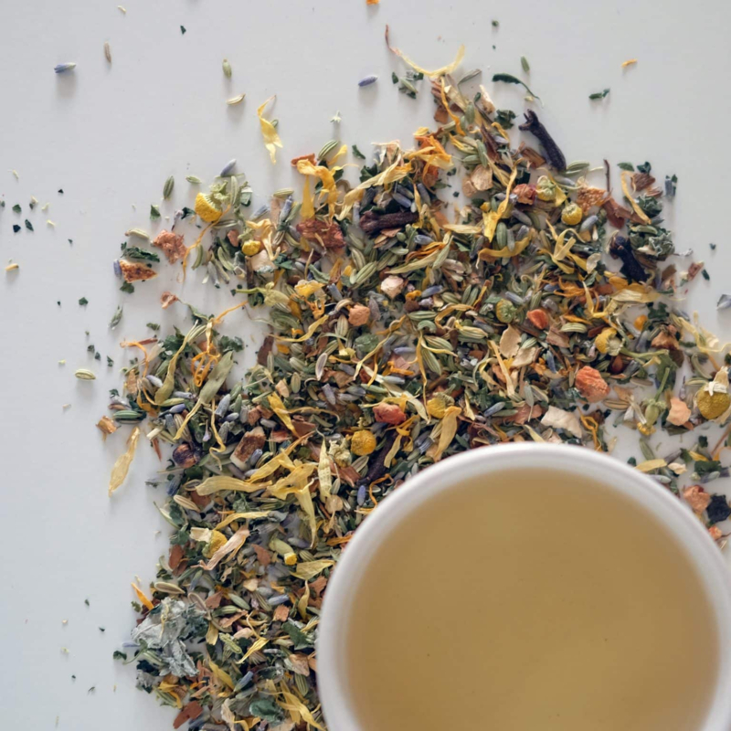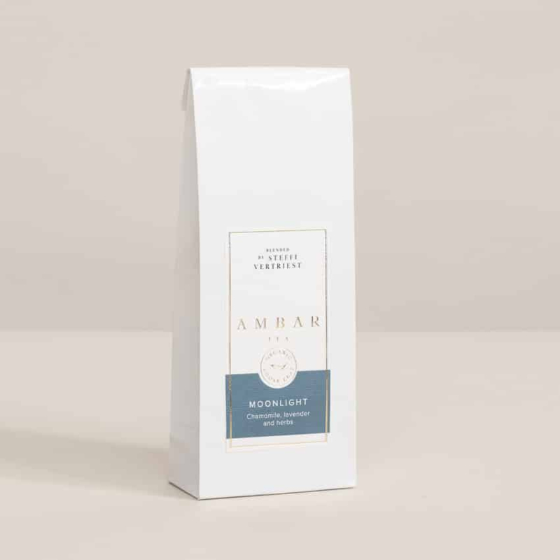 Deze kruidige en bloemige infusie is pure wellness in een kopje. De rustgevende toetsen van lavendel, kamille en venkel maken je helemaal zen en brengen balans. Perfect tijdens een momentje voor jezelf of voor het slapengaan, want deze blend bevat geen cafeïne. Deze bloemen en kruideninfusie is een thee van de premium AMBAR theelijn van Steffi Vertriest.
