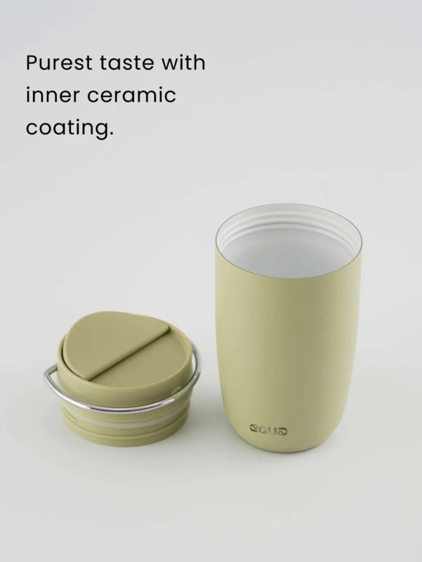 Deze prachtige koffiebeker van Equa is super handig voor je ochtend koffie on the go of voor andere drankjes. Het heeft een keramische binnencoting en dit zorgt voor een betere smaak van je favoriete drank. Het heeft een ijzeren handvat, dus heel gemakkelijk om te dragen.