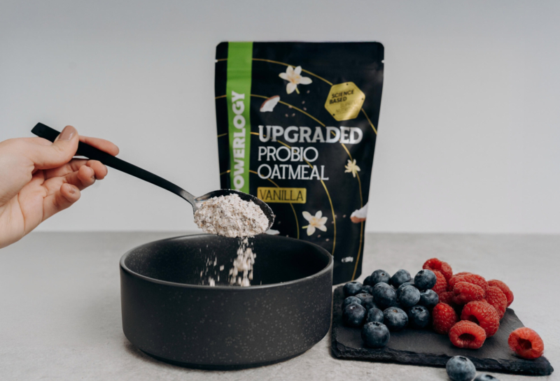 Een glutenvrije pap met kokos en vaille en een extra dosis probiotica voor een gezonde spijsvertering en immuniteit. Er werd Palatinose™ toegevoegd. Dit is een koolhydraat met een lage glycemische index, dat zorgt voor stabiele energie zonder schommelingen in de bloedsuikerspiegel. Palatinose® zetmeel wordt geleidelijk en relatief lang verteerd, maar heeft tegelijkertijd geen zware impact op het spijsverteringsstelsel. Dit unieke voordeel zorgt ervoor dat het lichaam consistent energie in kleinere doses binnenkrijgt (zelfs binnen 3-4 uur). Het voorkomt hypoglykemie en spaart spier- en leverglycogeen. Het resultaat is een langer uithoudingsvermogen, minder vermoeidheid en een betere concentratie.