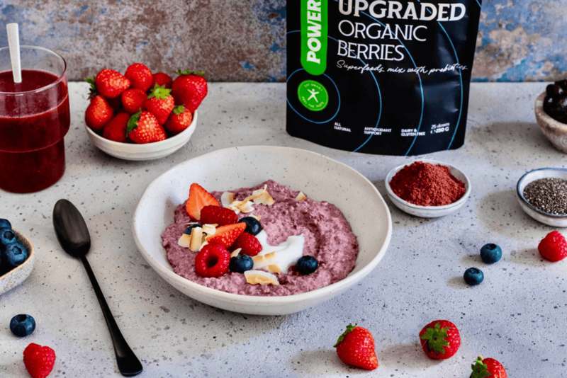 Dit zijn superfoods die antioxidantprocessen in het lichaam ondersteunen. Tegelijkertijd helpen ze met BIO cichoreivezels het microbioom, wat leidt tot een sterkere immuniteit en een optimale spijsvertering. Voor het recept hebben heeft Powerlogy lokale bessen zoals bosbessen, frambozen, aardbeien en zwarte bessen geselecteerd en aangevuld met de zeer functionele superfood goji.